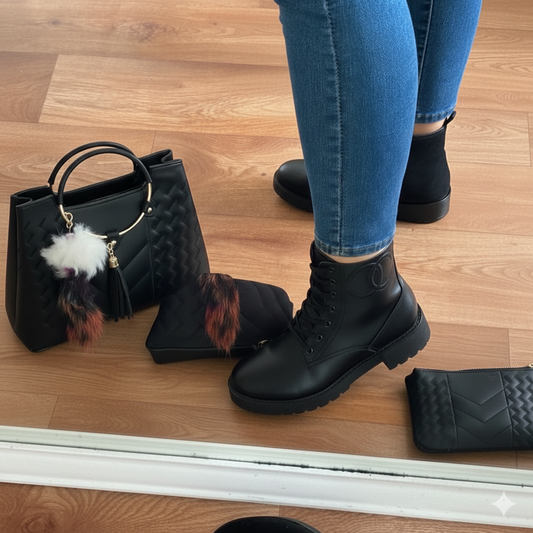 SALE ENDS AT MIDNIGHTباقة الأناقة المتكاملة – صباط وصاك بنفس اللون + حقيبة مجانية